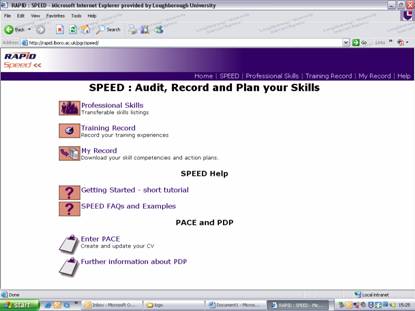 As far as monitoring and planning your skills development is concerned the key bit of RAPID-PGR for you is SPEED.