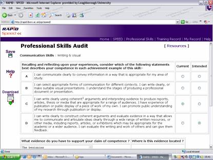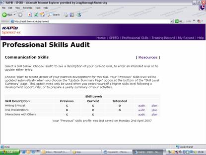 You will see the Professional Skills Audit page shown in figure 3 below.