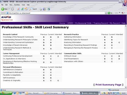 A button to press once a year to update your skills level summary page to monitor whether you actually achieved what you intended in the previous year. Take a print out of this to your supervisor or progression panel.